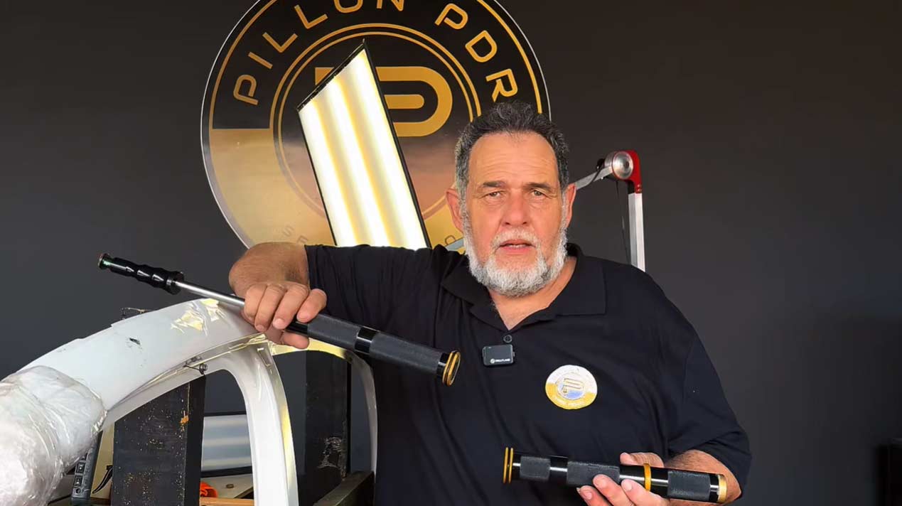Pillion PDR's smart cold glue slide hammer.It features a spring system that pulls the tool after releasing pressure. This is known as reverse pull.Thi..
